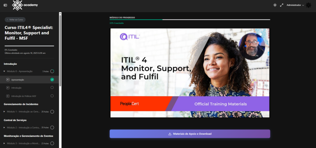 Excelente experiência de aprendizado com o curso de ITIL 4 oferecido pela PMG Academy. A abordagem didática, aliada a exemplos práticos, facilita a compreensão dos conceitos de gestão de serviços e reforça a importância de alinhar tecnologia, processos e geração de valor para o negócio.